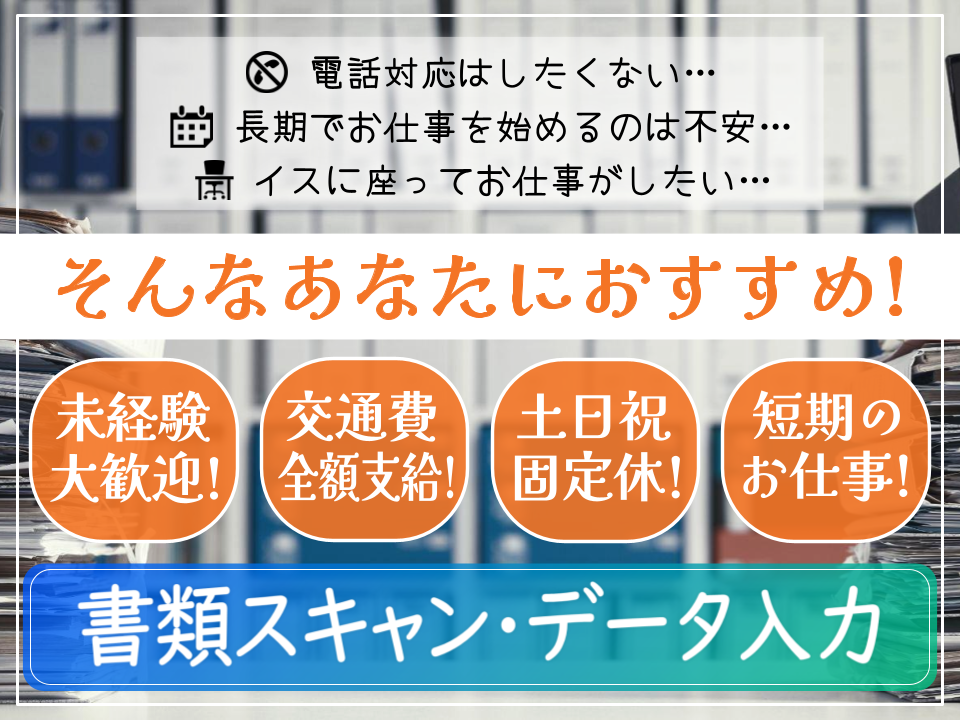 《埼玉県寄居町》未経験◎電話なし×精勤手当有!|書類スキャン・データ入力|土日祝日休み